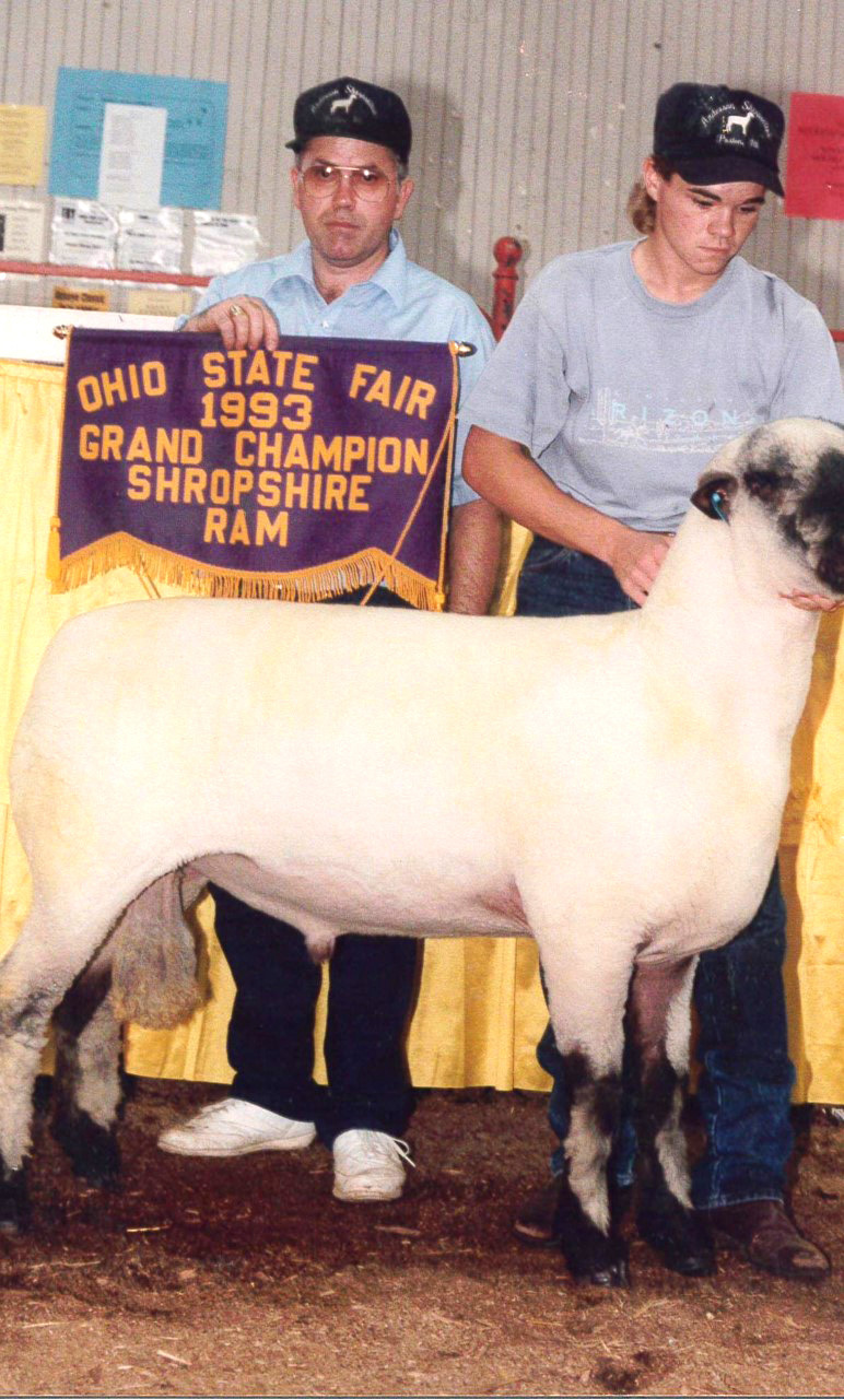 Glenn exhibited Shropshire sheep at The Ohio State Fair for 52 consecutive years and was inducted into the OSF Hall of Fame in 2003. All of Glenn’s and Joan’s children have been involved in the sheep industry after attending college and started their own families and careers. For many years Pam (deceased) cooked and promoted lamb at the Ohio Sale. Roger has a small flock of Dorset Sheep and serves as director of OSIA. David has a small flock of Shropshires. Daughter Wanda’s children participated with lamb projects at the county fair level.